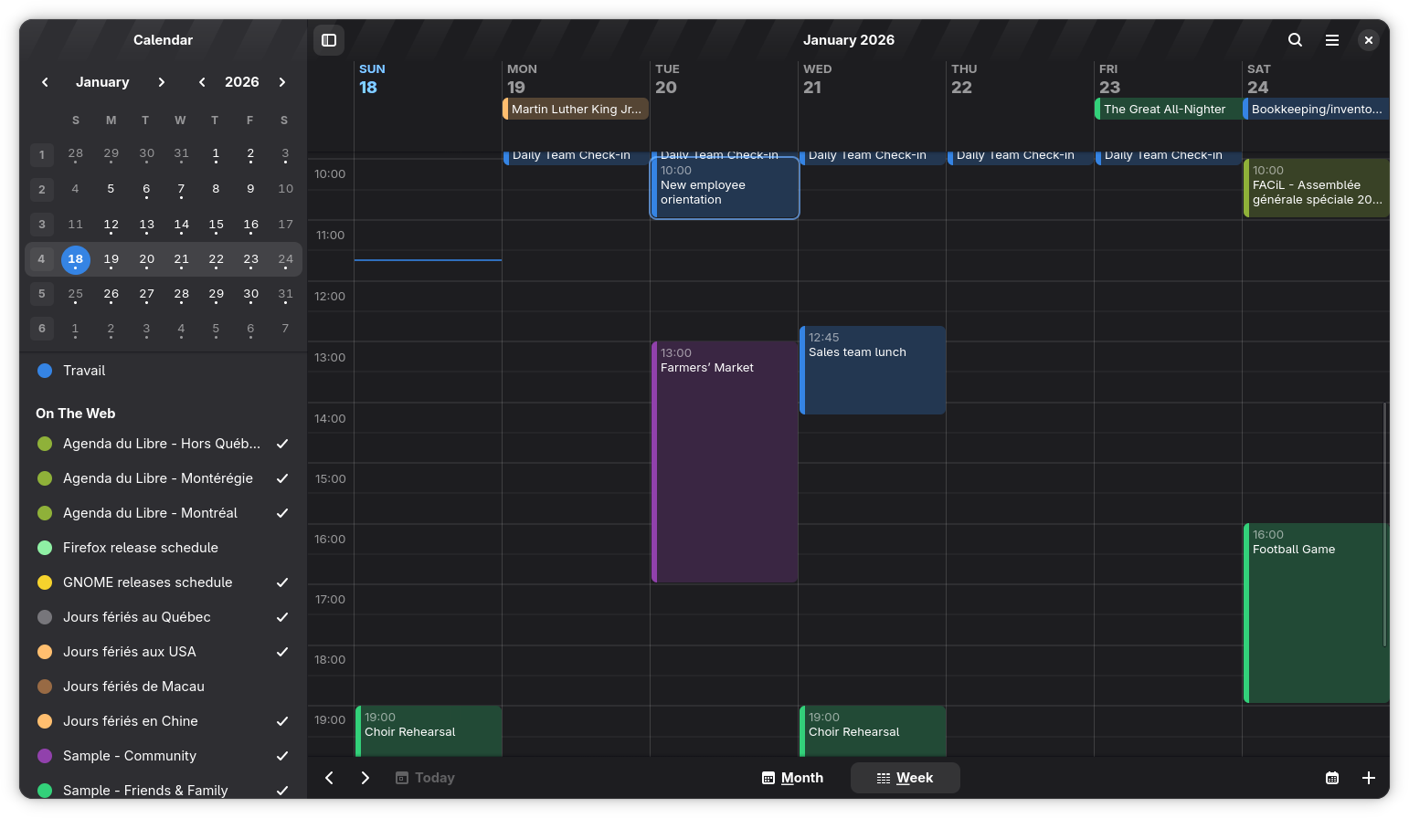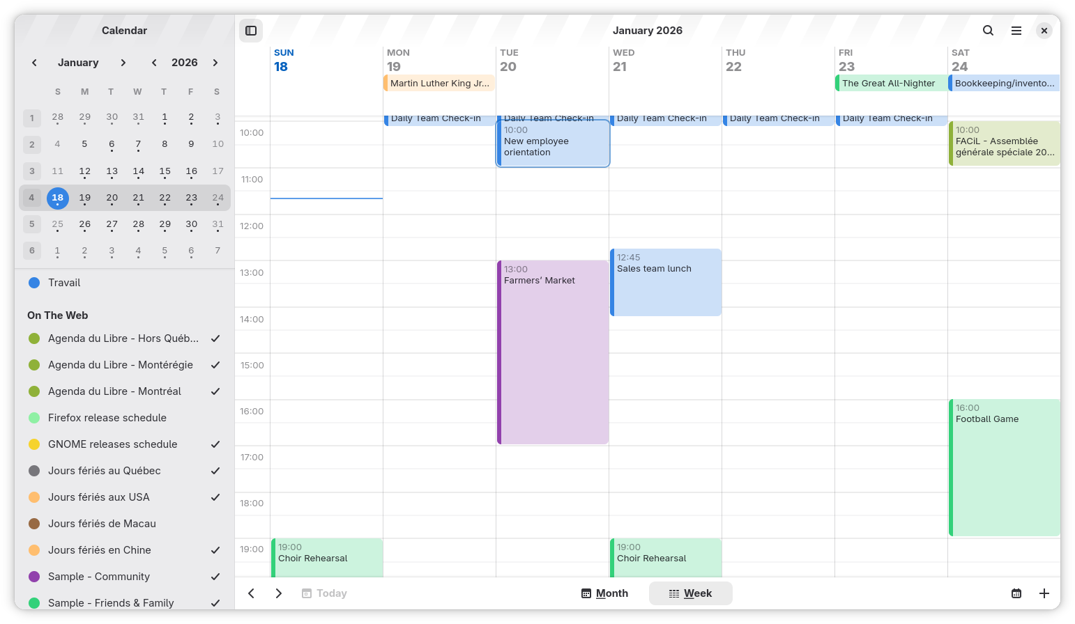In recent years, the project we have been most closely involved with is GNOME Calendar, a thoughtfully crafted application for the GNOME desktop and mobile platform. Indeed, GNOME Calendar has been punching above its weight and we believe it manifests the highest potential compared to its competitors. This can be explained by its lean design-first development model and the fact that it sustainably builds upon a modern set of robust and well-maintained technologies, including the Evolution Data Server (a battle-tested codebase that benefited from 25 years of testing and refinement, with a development cost estimated to $15M to $30M), the GTK toolkit providing a GPU-accelerated “adaptive” graphical user interface that can simultaneously work on mobile and desktop formfactors: